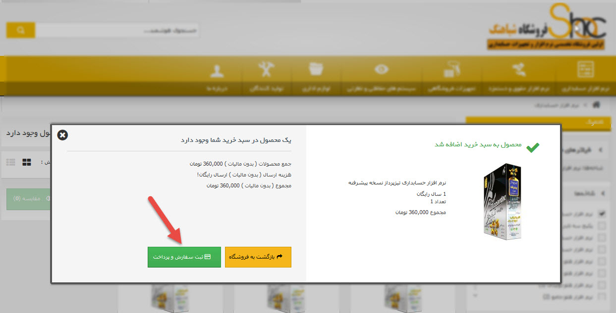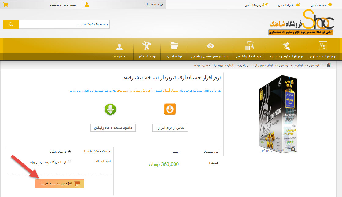 1 - ابتدا کالاهای مورد نظر خود را با فشردن دکمه " افزودن به سبد خرید " انتخاب کنید .